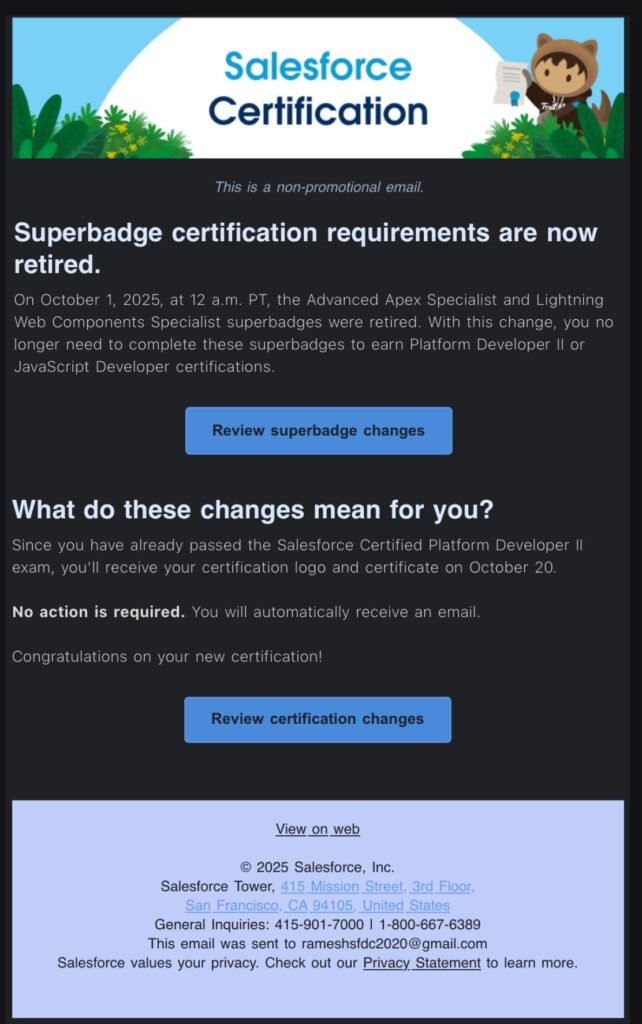 Starting October 1, 2025, Salesforce will officially retire the requirement to complete the following superbadges: