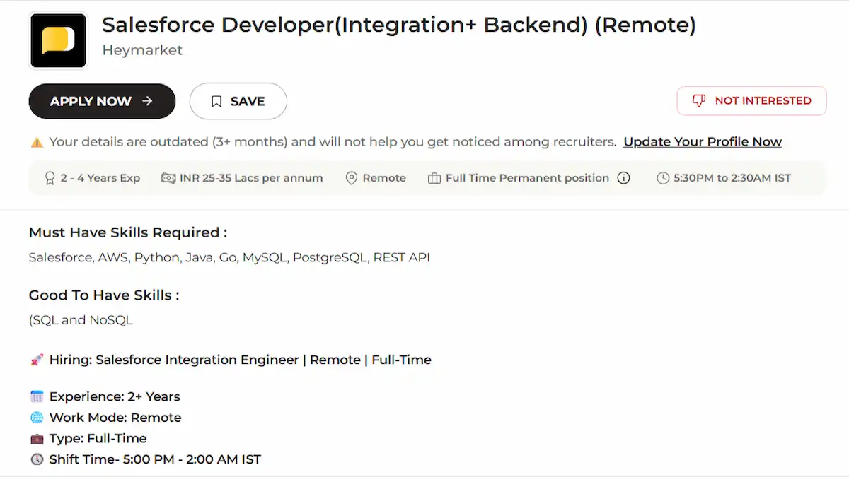 This time, Uplers is hiring for its client Heymarket, a modern business messaging platform helping organizations streamline communication with customers through text messaging and chat integrations. If you’re passionate about Salesforce, integrations, APIs, and backend systems, this could be the perfect opportunity to take your career global!